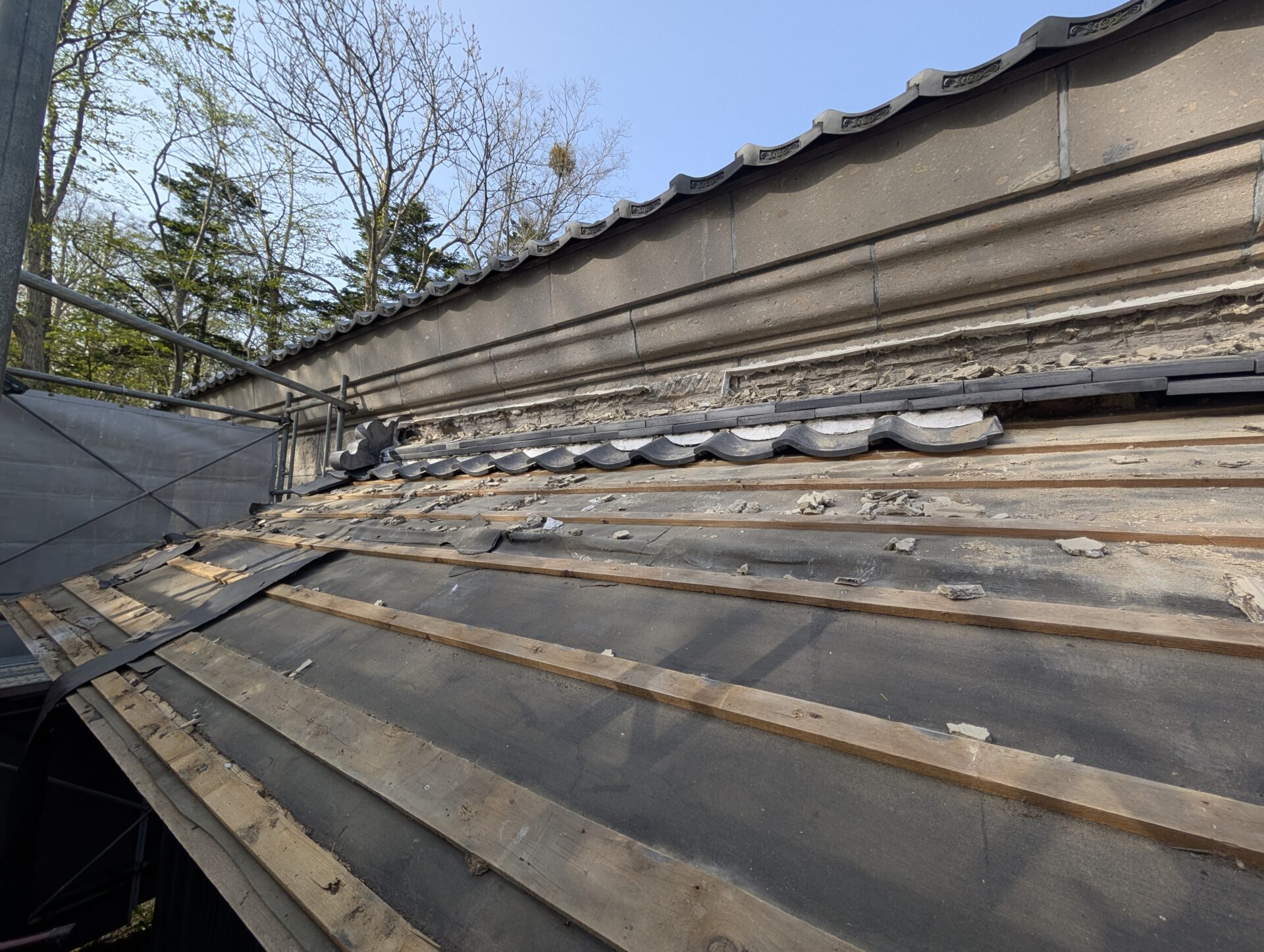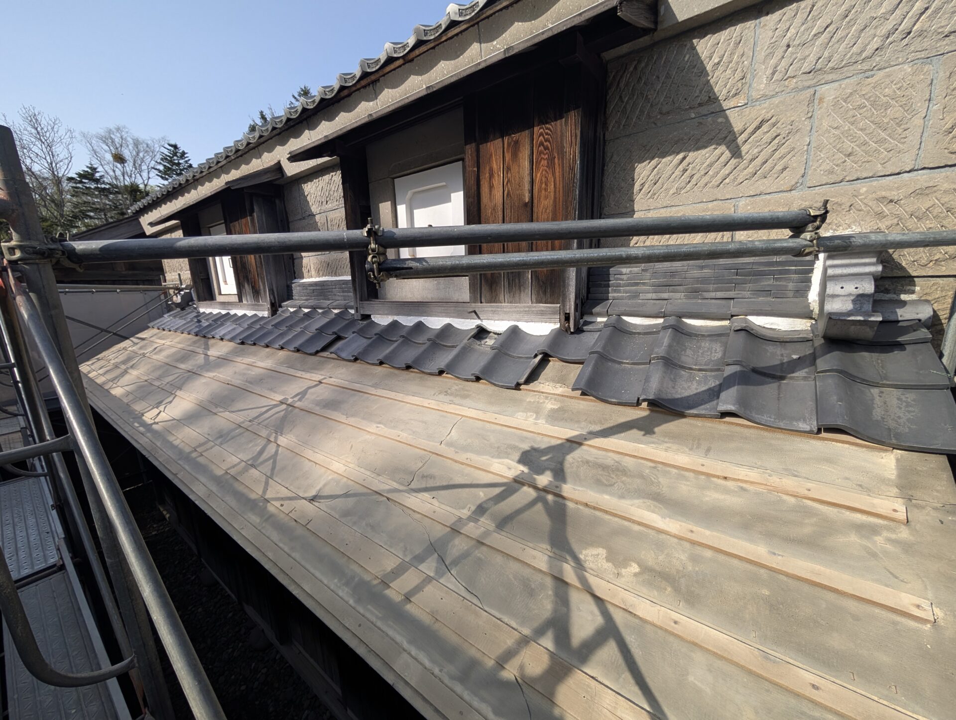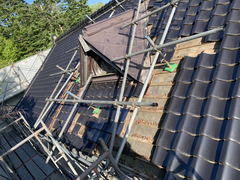 部分的に雨漏れや、瓦の破損や、屋根下地が腐食している所を修繕しています。