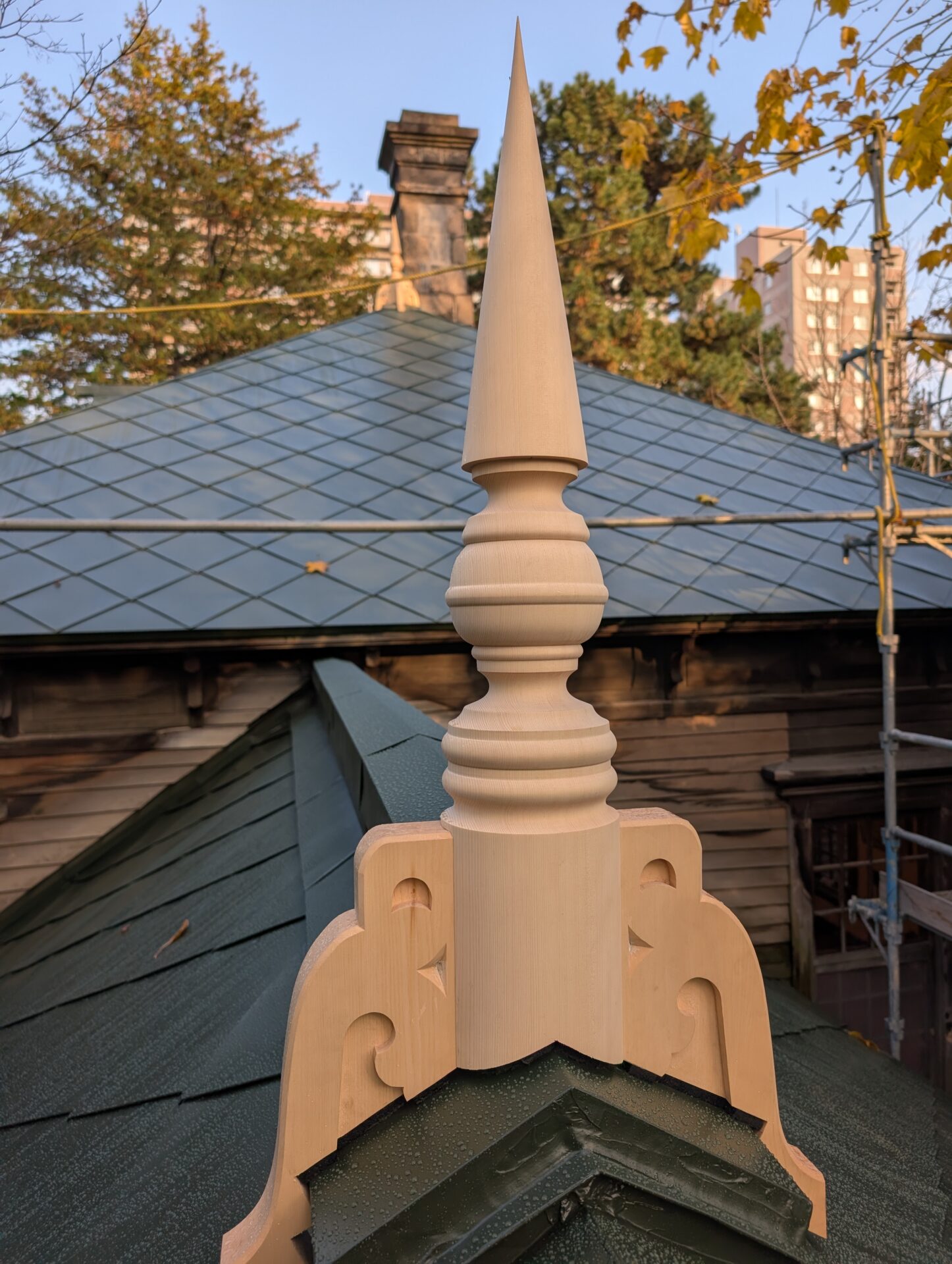 北海道指定有形文化財の旧永山武四郎邸の棟飾りを交換しました。