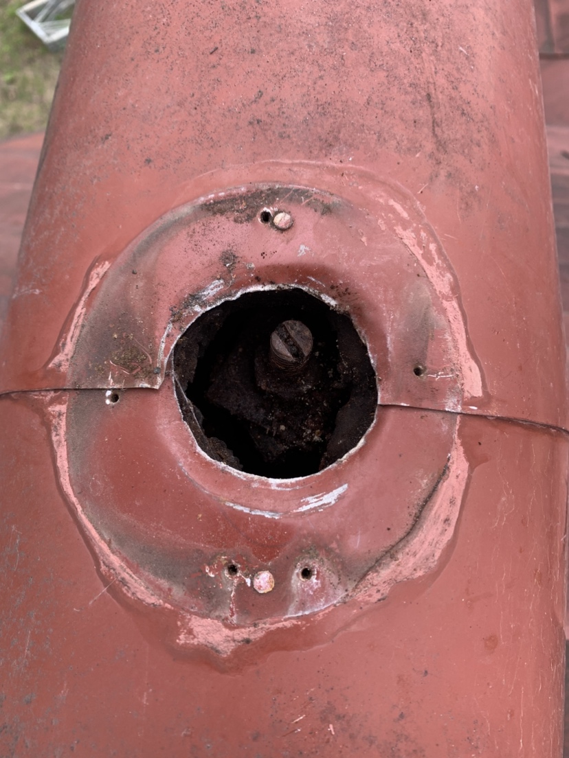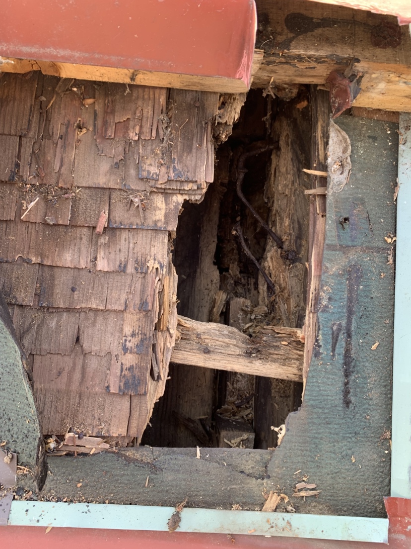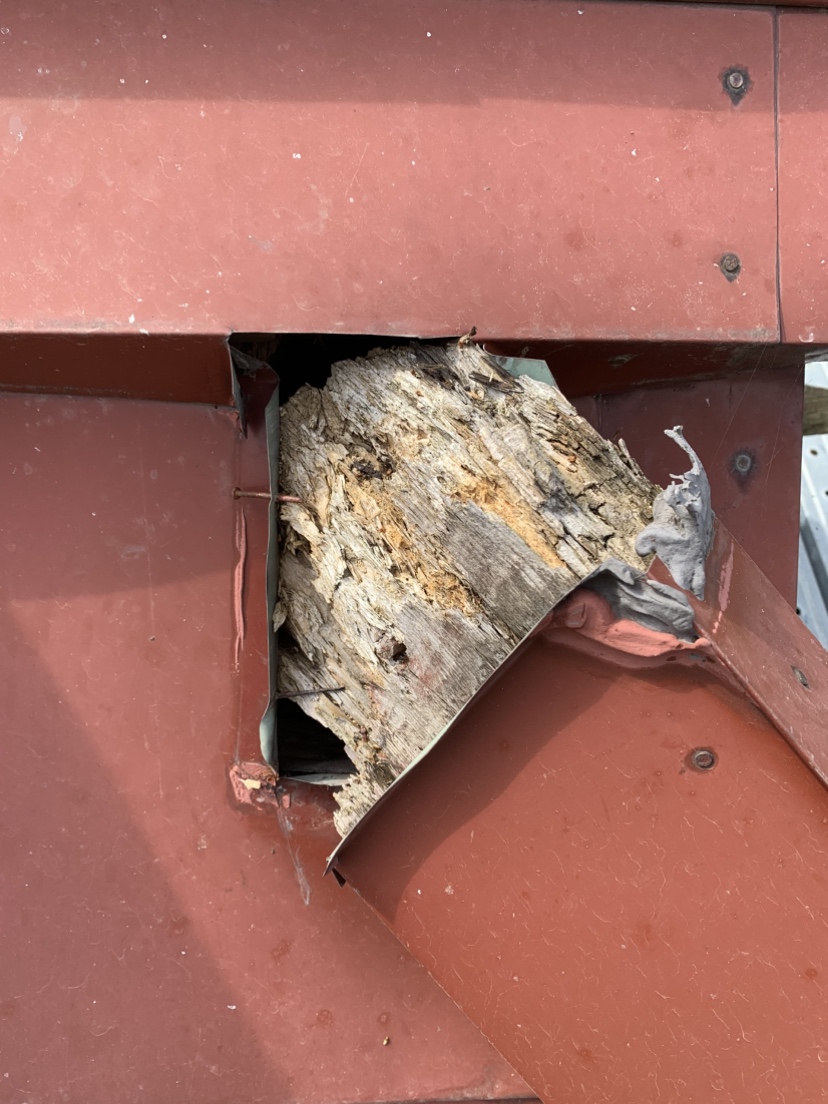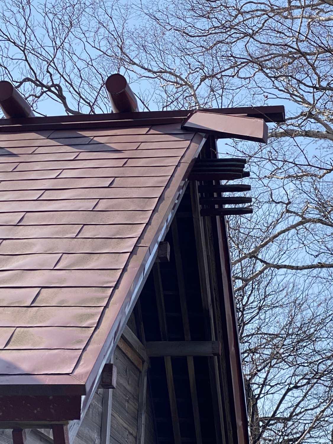 鰹木と千木が腐って折れてしまっているので、こちらも腐食が原因で起きています。
