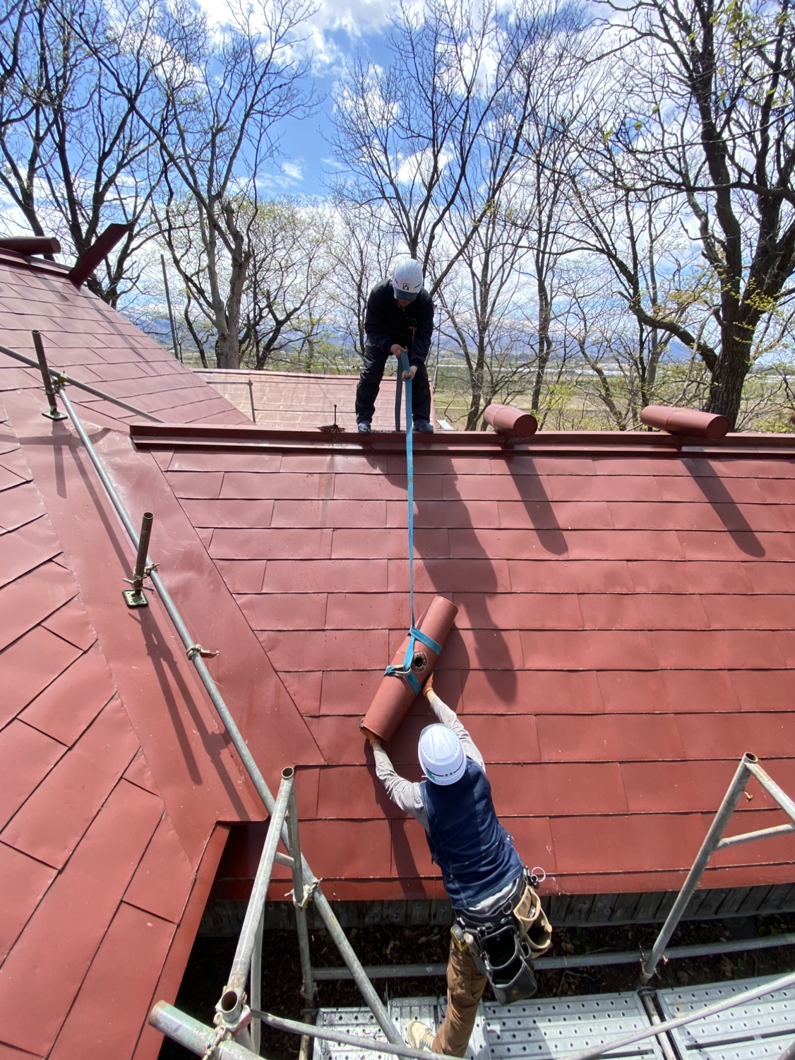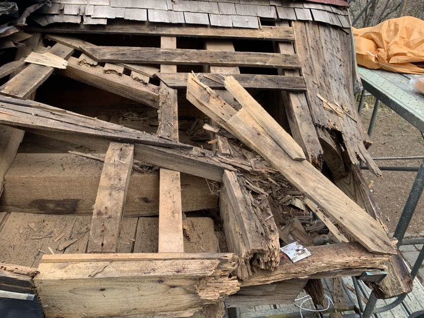 こちらは補強を施したのちに鰹木と千木を交換していきます。